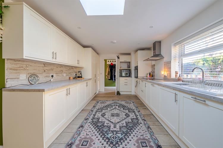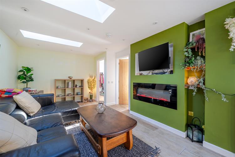 Entering the property into the entrance hall, there is a double-glazed door that gives views out to the rear garden, the modern cloakroom/shower room with shower cubicle, corner low level W.C. and a vanity wash basin with cupboard under. The hallway also has a utility area with space and plumbing for a washing machine and a tumble dryer above. From the entrance hall, the kitchen/breakfast room is accessed through a glazed door and is fitted with modern eye and base level units, with fitted appliances including an electric hob with extractor hood over, an eye level electric oven, a dishwasher and a fridge and a freezer. There is space for a table and chairs, which is open-plan to the sitting room with a feature electric fire and recess above, an ideal area for a television.