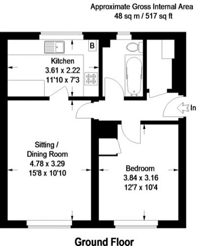 Accessed via communal areas, you enter a generous entrance hall with a large storage cupboard. The sitting room is to the rear of the apartment and is bright and airy. The kitchen has a front aspect overlooking and is fitted with a range of eye and base-level units and is fitted with a gas four-ring hob with an extractor fan over, an electric oven, space and plumbing for a washing machine and space for an under-counter fridge and a freezer and a gas boiler for the central heating. The double bedroom offers ample space for a bed and wardrobe, whilst the bathroom is fitted with a white suite, with the shower over the bath, a pedestal wash basin and a low level W.C.
